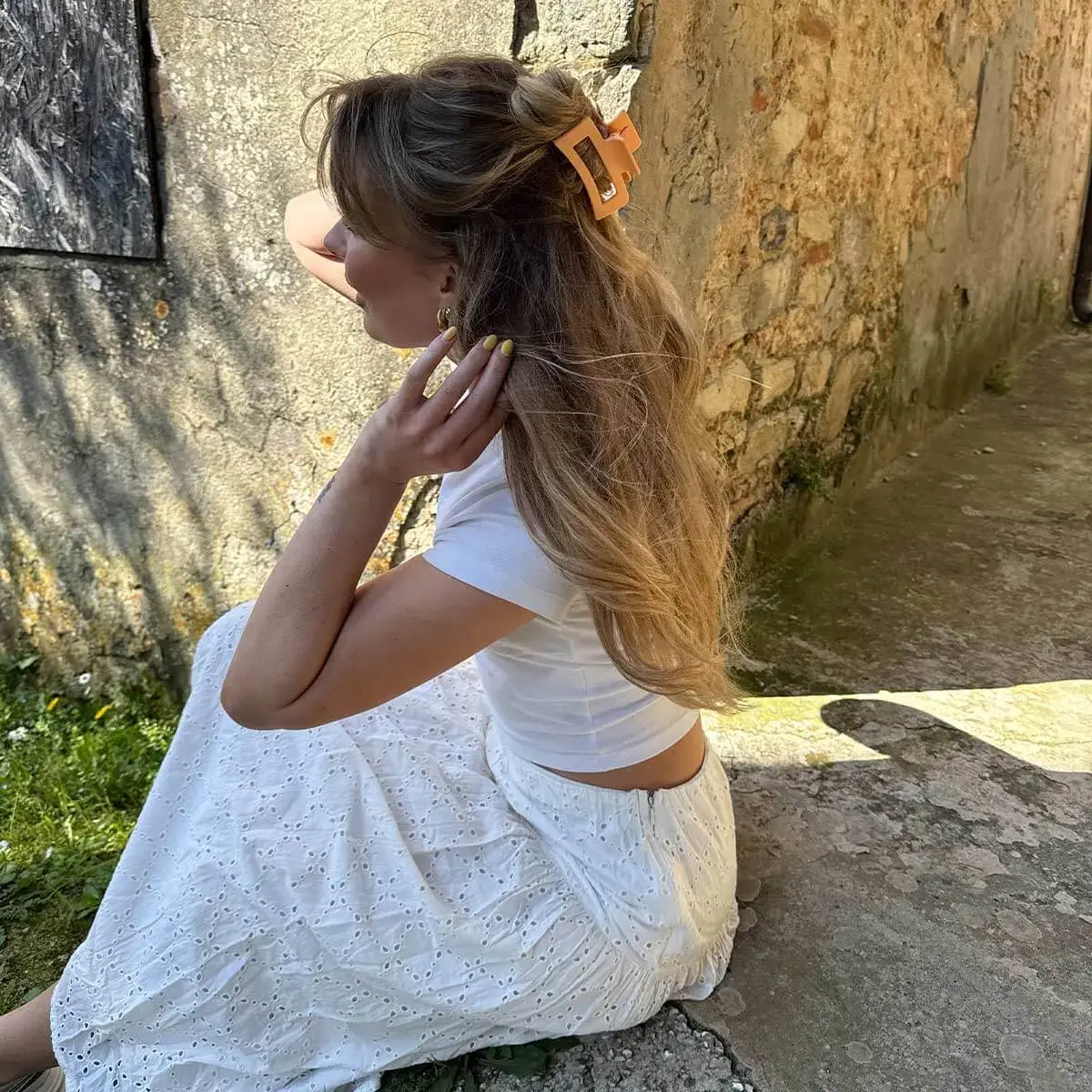 Unsere mittelgroße schwarze Haarklammer aus robustem Polycarbonat eignet sich perfekt für dich, wenn du dünnes bis dickes Haar hast und eine stilvolle Halbsteckfrisur möchtest. Wenn du dünnes oder kurzes Haar hast, eignet sich unsere mittelgroße Klammer auch perfekt für Vollfrisuren.