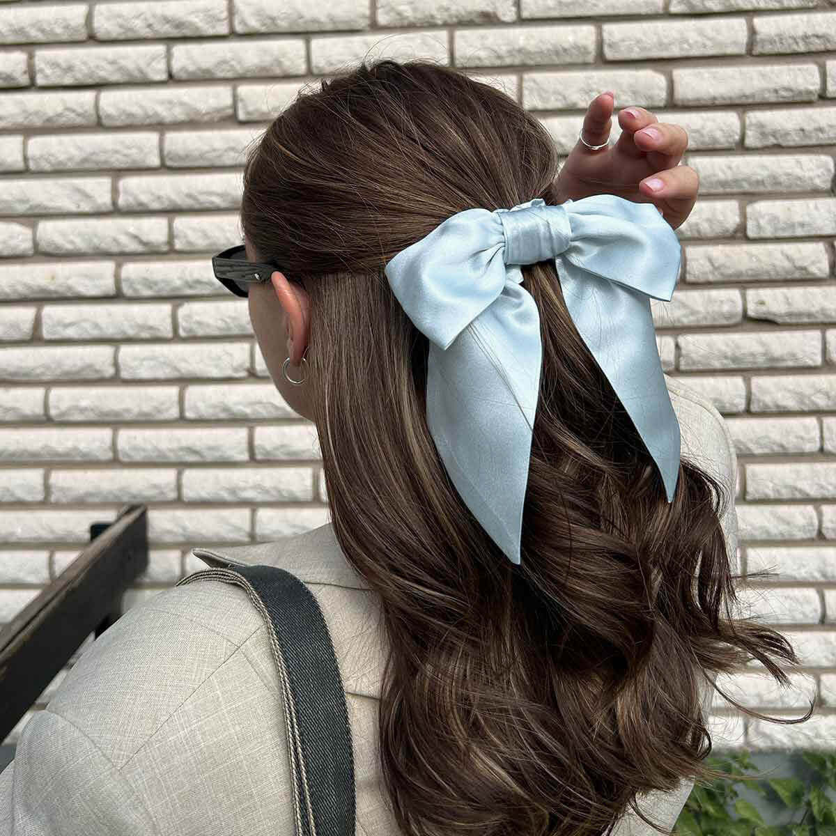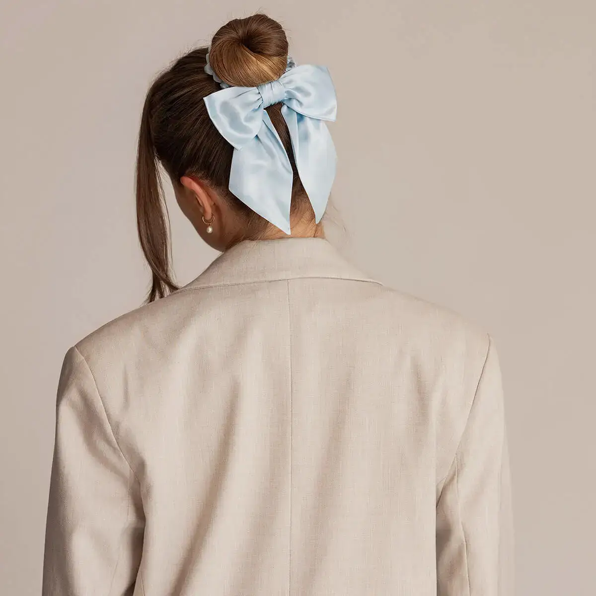 Unser Schleifen-Scrunchie in Hellblau wird aus 100 % echter Maulbeerseide höchster Qualität gefertigt. Dadurch ist er besonders schonend zum Haar und reduziert Haarbruch. Er ist so gestaltet, dass er dir in nur wenigen Sekunden eine stilvolle und haltbare Frisur verleiht – egal ob unterwegs oder beim Fertigmachen für ein Abendessen.